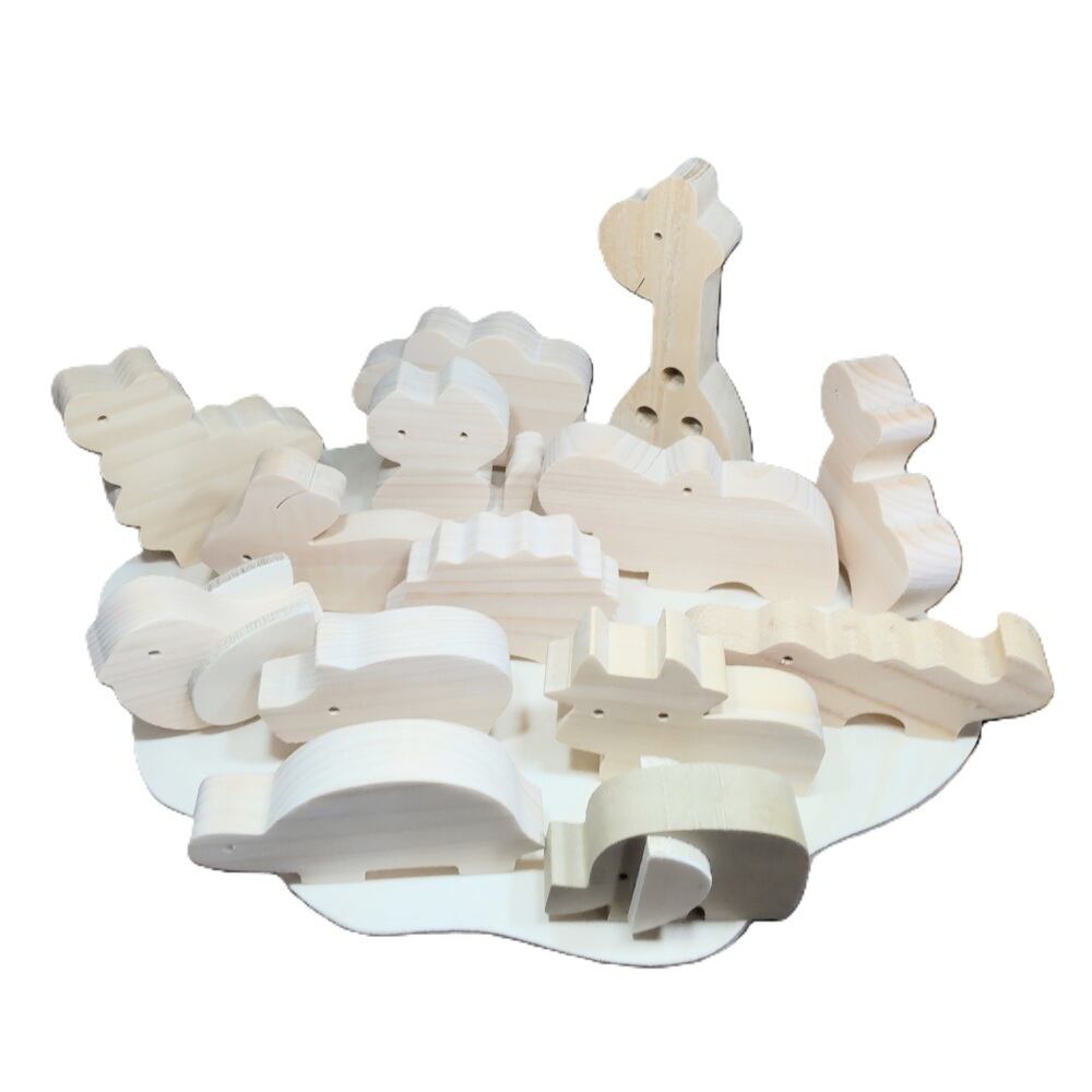 キリン、ゾウ、カバ、ラクダ、ヒツジ、ウシ、トリ、ネコ、ウサギ、ブタ、ワニ、ハリネズミ、カメ、アルパカの14種類 あれ?ねこはおうちからついてきたのかな?
