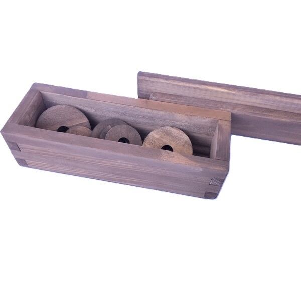 国産天然木(主にひのき)を使用していますので木の香りや円盤を落とした時の木の音が心地良く、飾って楽しむこともできる知育アイテムです。