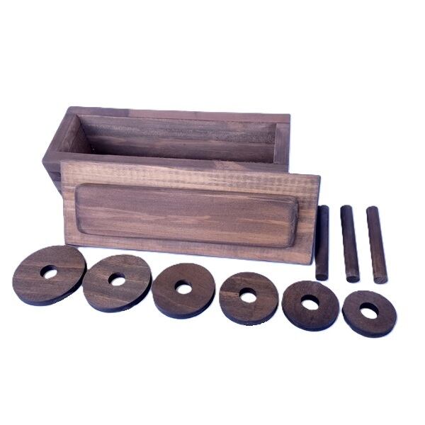 ■ 寸 法 本体(ふた) 約200×70×20㎜ / 円盤 最大φ55㎜ 最小φ35㎜ t 5㎜ / 棒 φ10×70㎜ / 箱 約200×70×53㎜