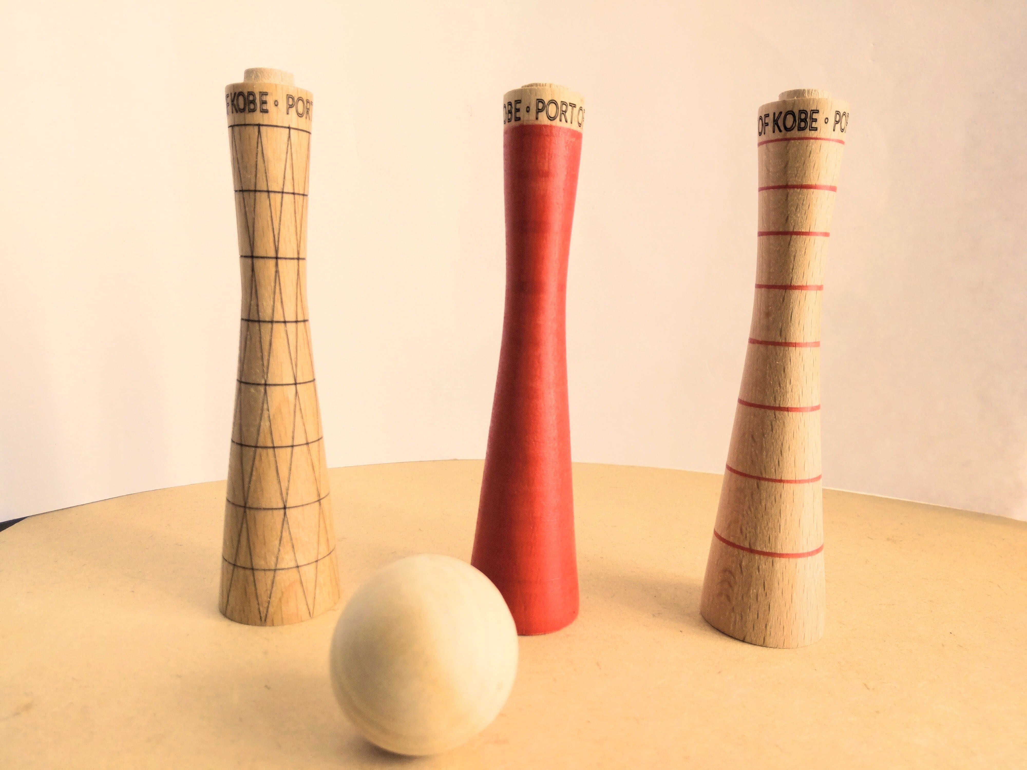 神戸のシンボル「ポートタワー」をモチーフに並べる/転がす/積む 遊べる木のオブジェを作ってみました。デザインはレッドとストライプとレザーの3種類です。実際の形状とは異なりますが高さ108mの1/1000スケールで製作しました。材料にはKOBE WOOD(六甲山のコナラ)を使用しています。神戸ウォーターフロント開発機構 届出済